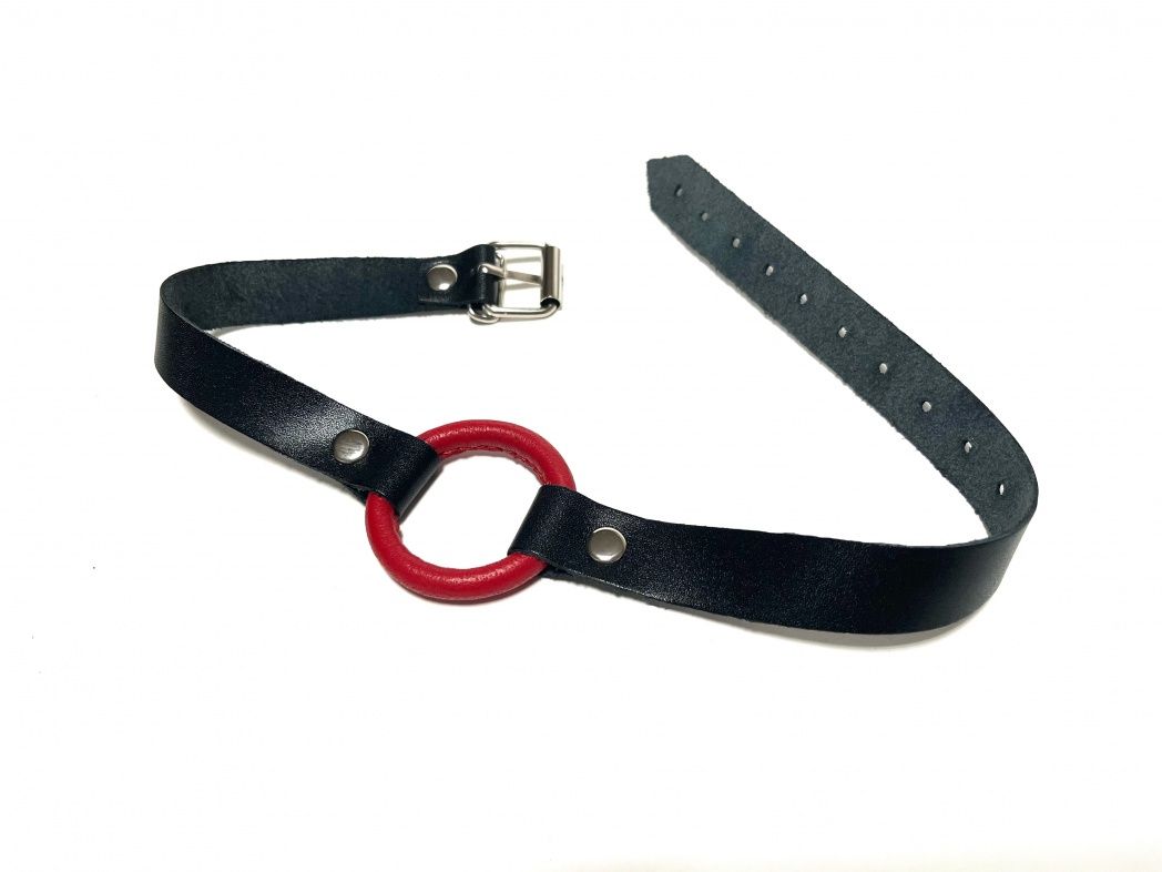 Строгий и надежный кляп, выполненный из натуральной кожи черного цвета. В основании использовано сварное металлическое кольцо, обтянутое нежной овечьей кожей красного цвета. Обхват удобно регулируется с помощью металлической пряжки. Такой кляп станет отличным элементом БДСМ игры, функциональным и комфортным в использовании. Диаметр кольца - 4,5 см. Ширина ремешков - 1,8 см.