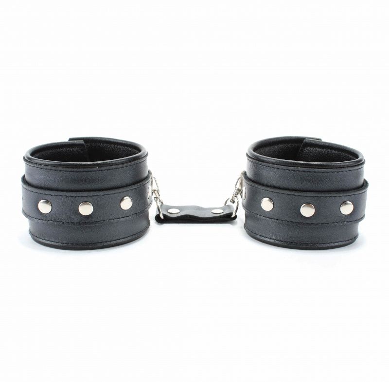 Оживить эротические игры Вам помогут наручники. Этот интимный аксессуар пользуется успехом у мужчин. Выполненные в черном цвете и украшены прочными ремешками. Модный интимный аксессуар не сдавливает и не нарушает кровообращение, так как изготовлен из мягкой кожи. Чтобы любимая никуда не убежала, наручники соединены короткой перемычкой. Длина манжет - 25,5 см., ширина - 5,7 см. Длина перемычки - 6 см.