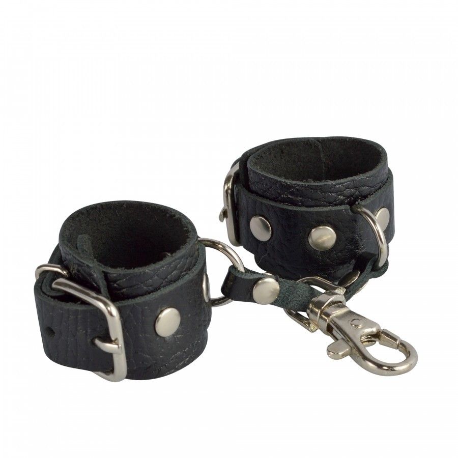 Черный кожаный брелок в виде наручников.