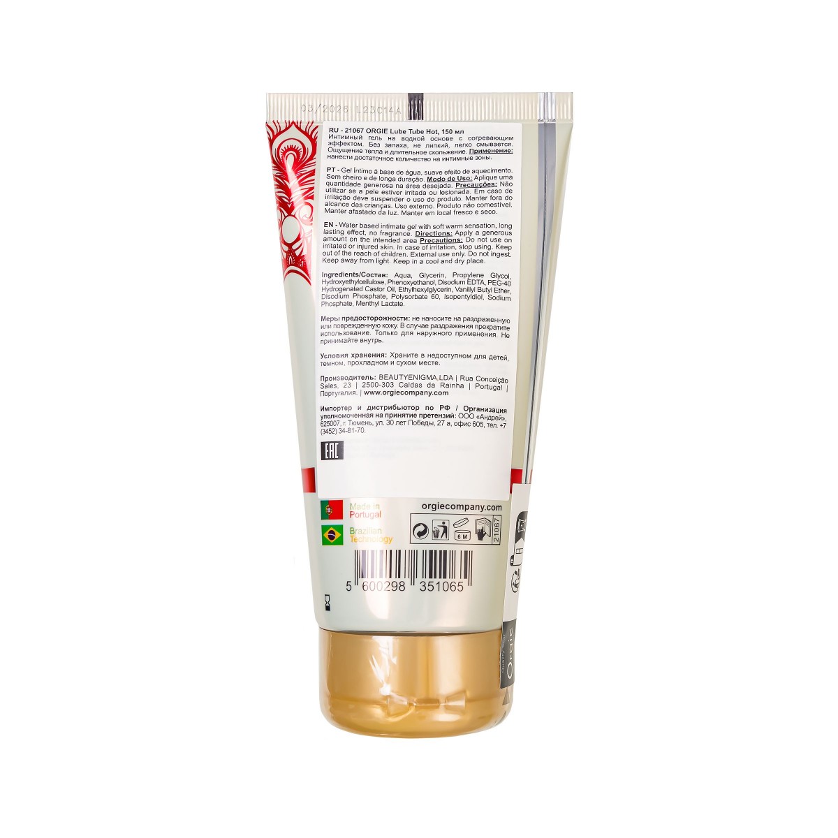 Интимный гель на водной основе ORGIE Lube Tube Hot - ваш верный спутник в мире страсти и удовольствия. Созданный на водной основе, этот лубрикант обладает великолепным согревающим эффектом, который пробуждает все ваши чувства. Простой в использовании, Lube Tube Hot гарантирует гладкость и долговременное скольжение ваших интимных моментов. С его помощью вы сможете ощутить прилив страсти и тепла, вдохновляясь каждым движением. Оставьте позади заботы о липкости и неудобствах, этот лубрикант не только эффективен, но и легко смывается, предоставляя вам ничто иное, как наслаждение. Без запаха, он подарит вам непередаваемые ощущения и оставит лишь воспоминания о жарком и страстном опыте. Просто нанесите обильное количество на предполагаемую область и позвольте волнам страсти взять верх. Откройте новые грани наслаждения с этим разогревающим гелем, созданным для того, чтобы превратить ваши моменты в чувственное путешествие. Высококачественные компоненты, удобная упаковка-туба объемом 150 мл и уровнем pH 5.0 - 6.0 – всё это делает продукт ORGIE Lube Tube Hot идеальным спутником для вашего интимного здоровья и удовольствия.